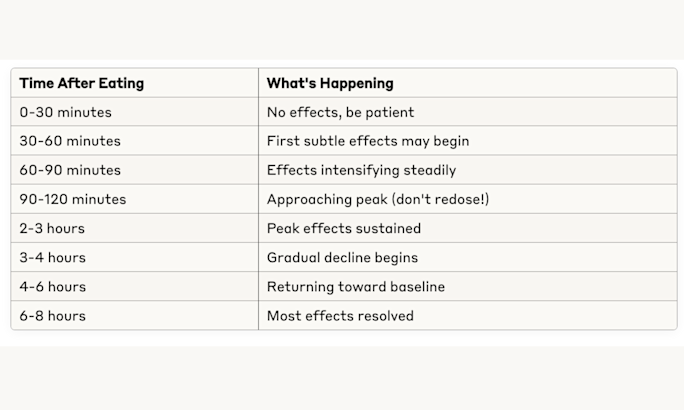 The #1 Mistake: Eating more because "these aren't working." Effects take 30-120 minutes to begin. Your liver converts Delta-9 THC into 11-hydroxy-THC, which is 2-3 times more potent than smoking.