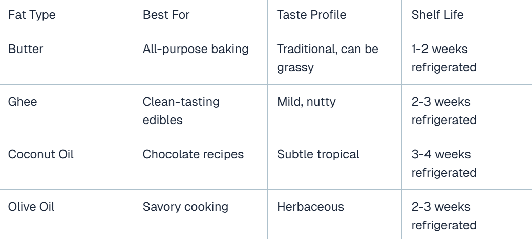 Using lab-tested flower from sources like Mood's quality standards makes your fat choice less critical since you'll know the exact THC percentage in your calculations.