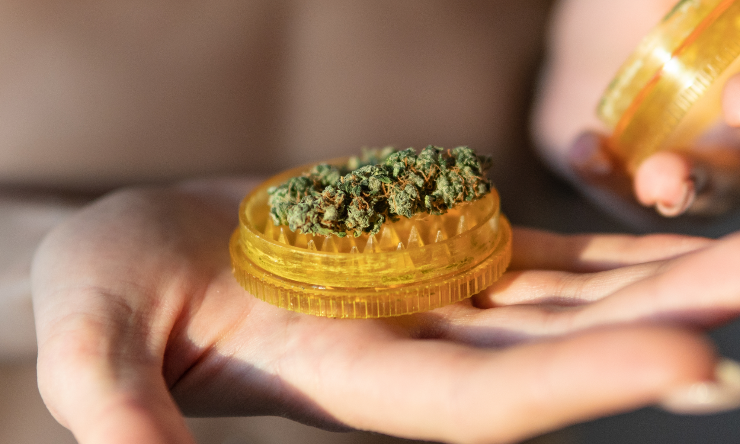 Break your cannabis into medium-sized pieces using a grinder or your fingers—consistency matters more than whether you use tools or hands.