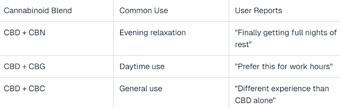 Your Specific Goals: Evening relaxation calls for different formulations than daytime use. Users seeking better rest gravitate toward CBD+CBN blends, while those preferring daytime options often choose straight CBD or CBD+CBG combinations.