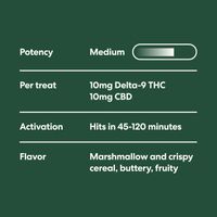 - 10mg Delta-9 THC/10mg CBD, Medium Potency