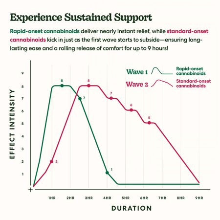 Verified PurchaseFast-acting THC delivers comfort in as little as 15 minutes, with standard-release THC and powerful botanicals kicking in right when you need them, for hours and hours of sustained natural relief.