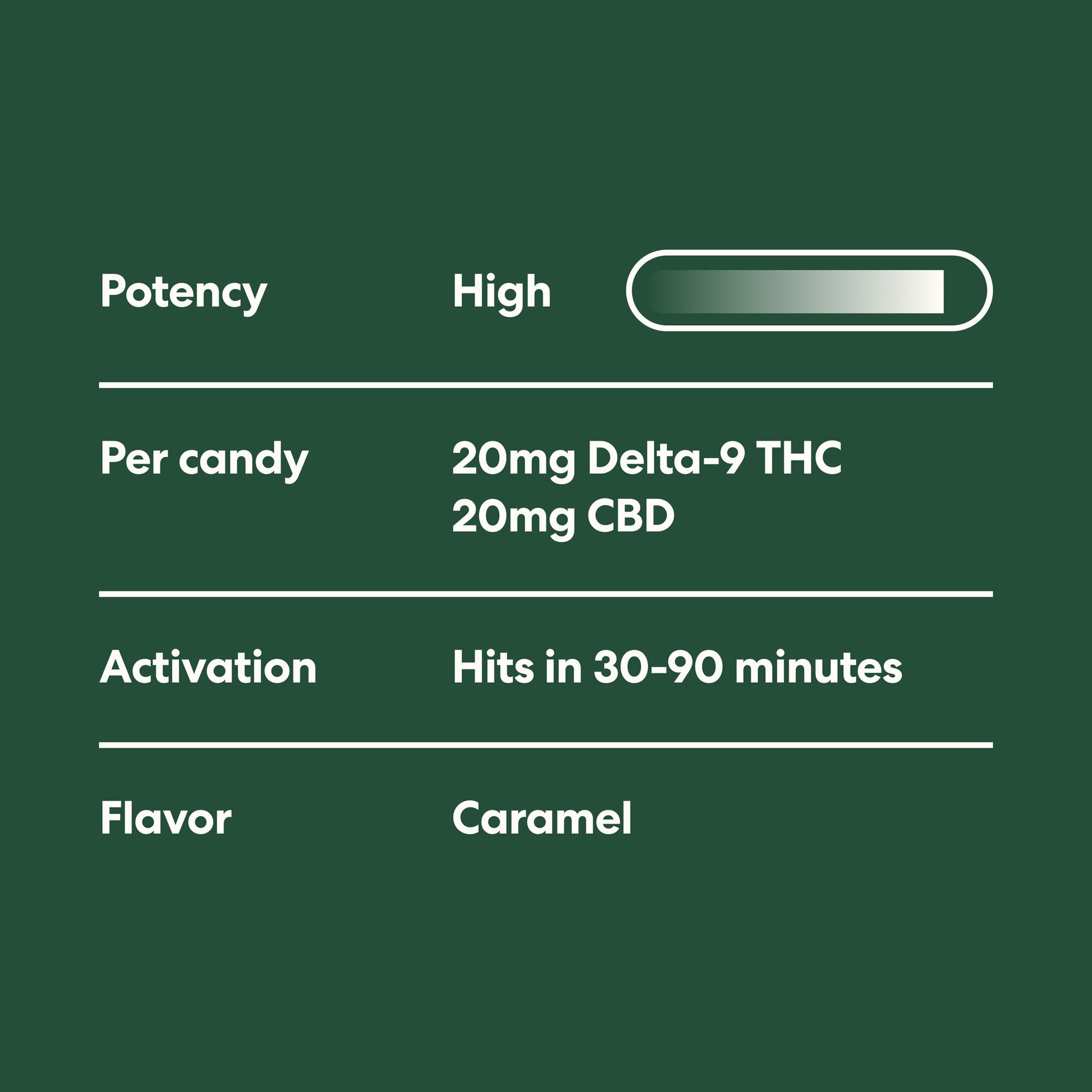 Start with ½ to 1 full serving. Desired effects start within 30 - 120 minutes