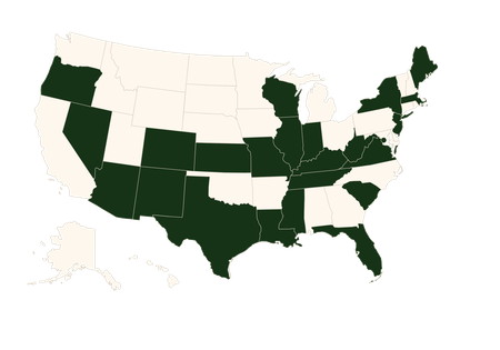 Arizona, District of Columbia, Florida, Illinois, Indiana, Kansas, Kentucky, Louisiana, Maine, Massachusetts, Mississippi, Missouri, Nevada, New Jersey, New Mexico, New York, North Carolina, Oregon, Pennsylvania, South Carolina, Tennessee, Texas, Virginia, West Virginia, Wisconsin