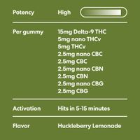 - 15mg Delta-9 THC/ 5mg Fast-Acting THCv