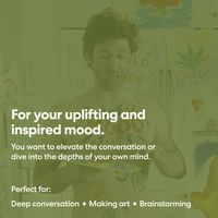 Designed for mental clarity, sharp focus, and an elevated mood with a very gentle, stimulating buzz that energizes body and mind.