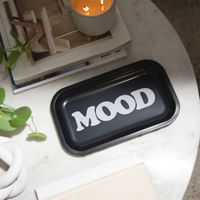 A durable metal tray with rounded edges and a laser-etched logo is perfect for rolling superior joints or prepping flower without the mess.