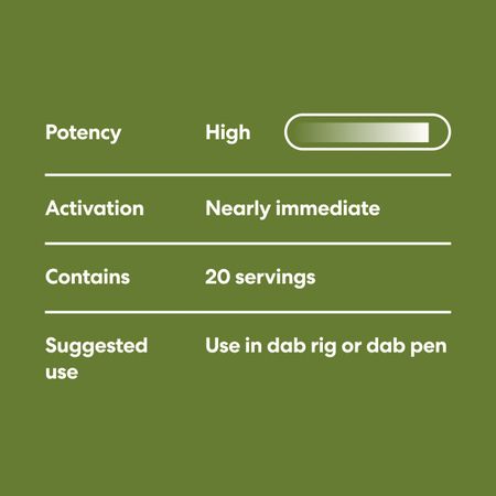 These are our most potent products. Start with no more than one or two puffs. Onset is nearly immediate