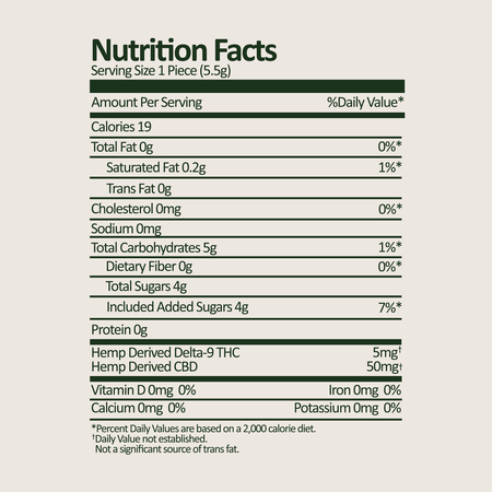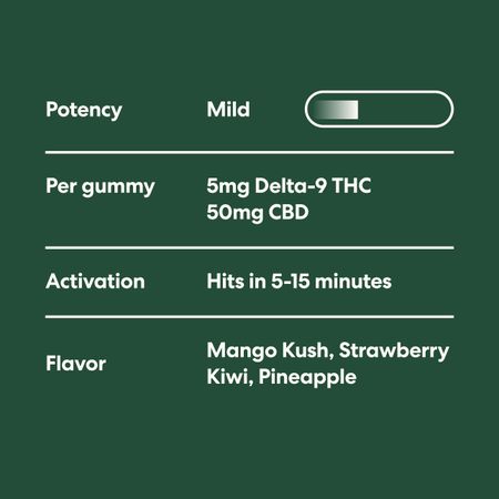 Start with ½ to 1 gummy. Desired effects start within 5 - 15 minutes.