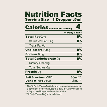 One dropper contains 83mg of concentrated full-spectrum CBD and up to 1.5mg of THC for deep, relaxing comfort with a very gentle buzz.
